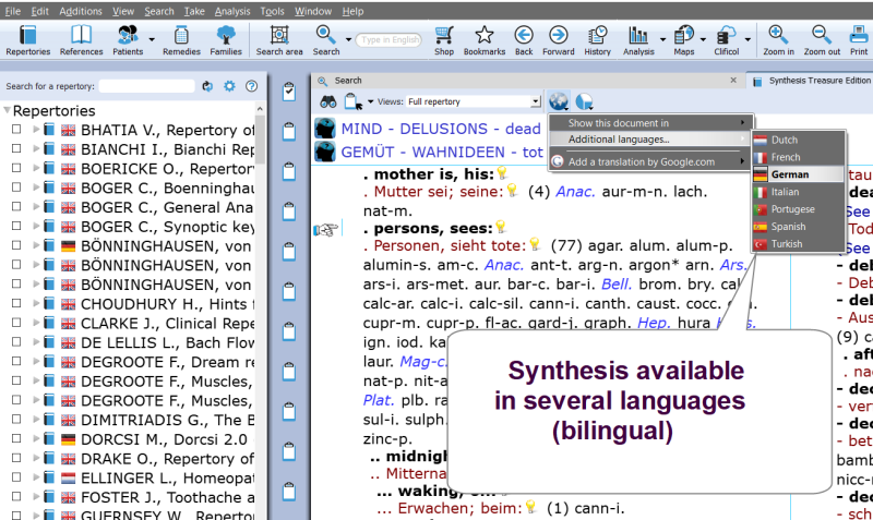 RadarOpus offers you the most reliable repertory Synthesis, available in several languages. Many other smaller and larger repertories, and the most extensive Homeopathic Library available anywhere. Quickly read more on the page English or Dutch, or ask for a 30 days Demo & if you like a 15 minutes personal webinar training.