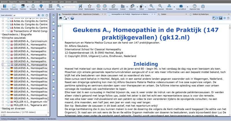 De bibliotheek in RadarOpus biedt een zeer rijke bron aan kennis. Het repertorium helpt maar ten dele en vaak is het nodig de originele materia medica na te lezen. Bijvoorbeeld in de therapeutische titels kan veel ervaring raadplegen over bepaalde pathologie. In tijdschriften en seminarverslagen kan men veel ervaring opdoen via casuistiek van bepaalde remedies of bepaalde pathologie.
