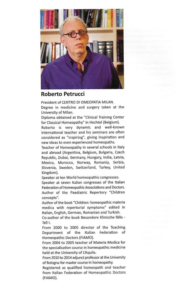 Roberto Petruccie discusses the themes of many families: 56 Plant-families, 13 Animal-families, 15 Anions-families, 52 Cations-families. 6 Periods, 18 Stages, and 12 Other familiy groups.Paperback 280 pagesMultilingual: English, German, Italian.
